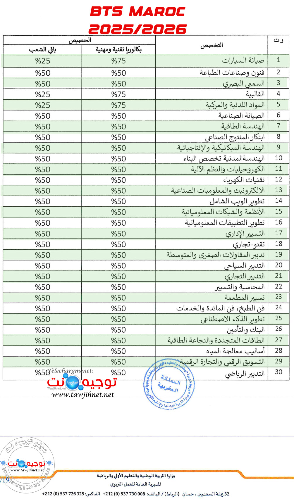 هام من موقع توجيه نت : بشأن نشر لوائح الانتظار رقم 1 Liste d’attente BTS