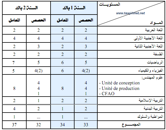 حصص ومعاملات المواد في شعبة العلوم والتكنولوجات الميكانيكية