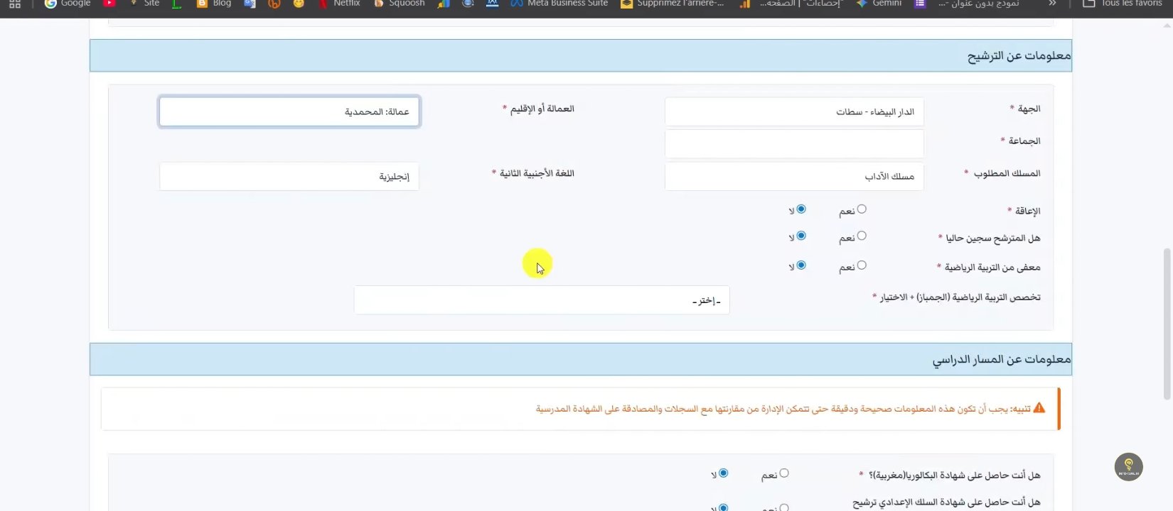لأن هناك بعض الشعب لا تظهر في إقليمي، وأود اختيار شعبة محددة متوفرة فقط في مديرية أخرى.
