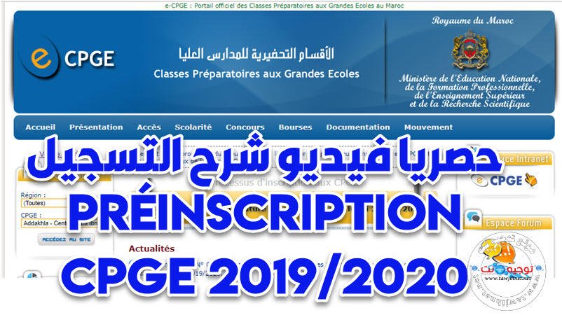 حصريا فيديو شرح التسجيل CPGE 2019 2020