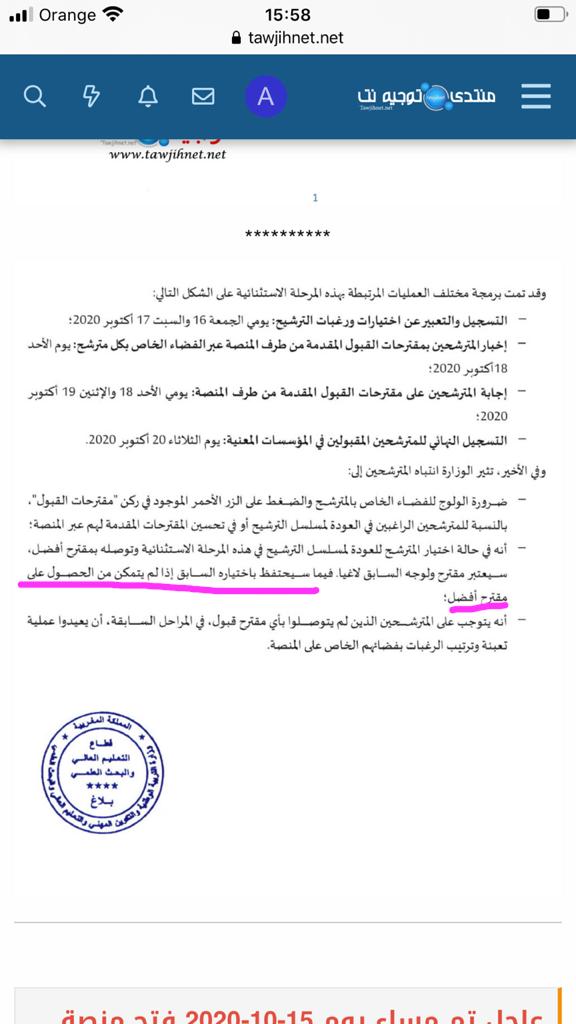 بلاغ الوزارة ليوم 16 اكتوبر واضح وضوح الشمس حيت انه من اعاد الترشح للمرحلة الاستثنائية و لم يتوصل باقتراح افضل فانه سيحتفظ باختياره السابق و ما عليه إلا تأكيد ذلك عبر المنصة.