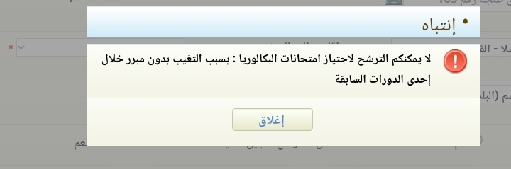 مشكل لايمكنكم الترشح بسبب التغيب بدون مبرر في احدى الدورات السابقة