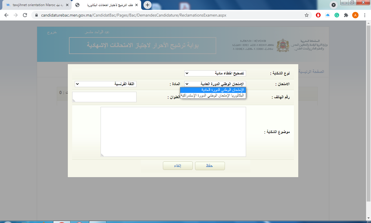 تقديم شكاية امتحانات البكالوريا باك 2021 Bac
