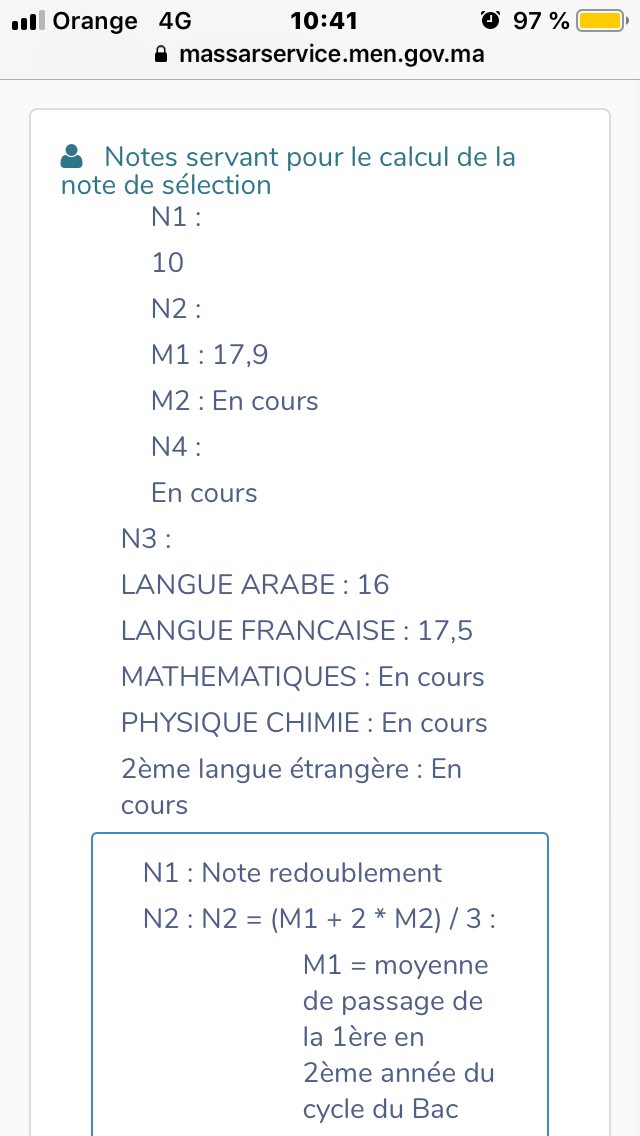 عندما أدخل إلى مسار أصبحت أجد النقط لحساب معدل الانتقاء غير موجودة en-cours مع العلم أنني مبرمج LA TRANCHE 3 هل هذا عادي وشكرا لكم