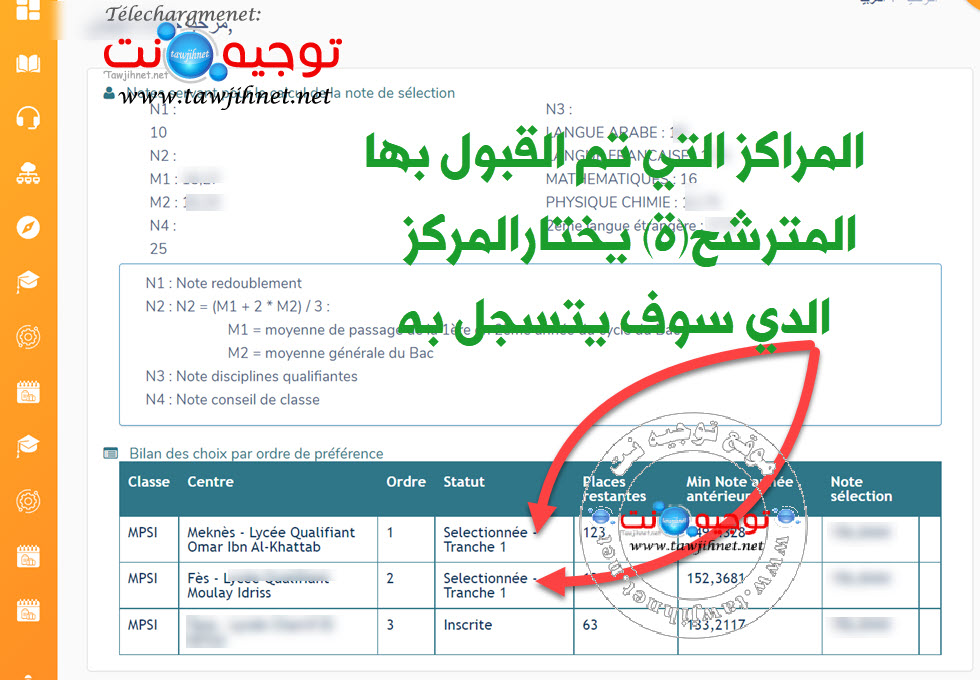 مثال : لمترشح توصل بنتيجة البث يومه 27-07-2021 من مراكز انتهت من عملية ترتيب مترشحي Tranche1 حسب الاستحقاق