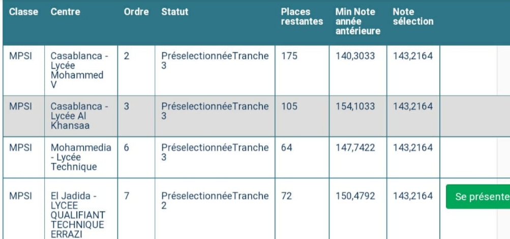 يجب اختيار se presenter الان في المركز الدي اتاكم أو المراكز التي اتتكم