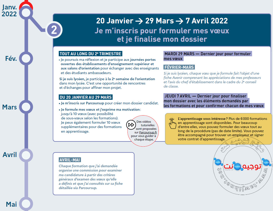 de 20 Janvier > 29 mars > 7 avril 2022 - Je m’inscris pour formuler mes vœux et je finalise mon dossier