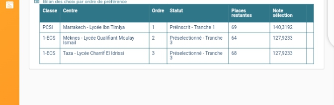 - ننصح بداية بضمان مقعد MPSI او ECS حسب ماترغبون من افاق مستقبلية وحسب مستواكم ، فالترتيب المشار اليه أكيد سوف تقبول فيهما معا .